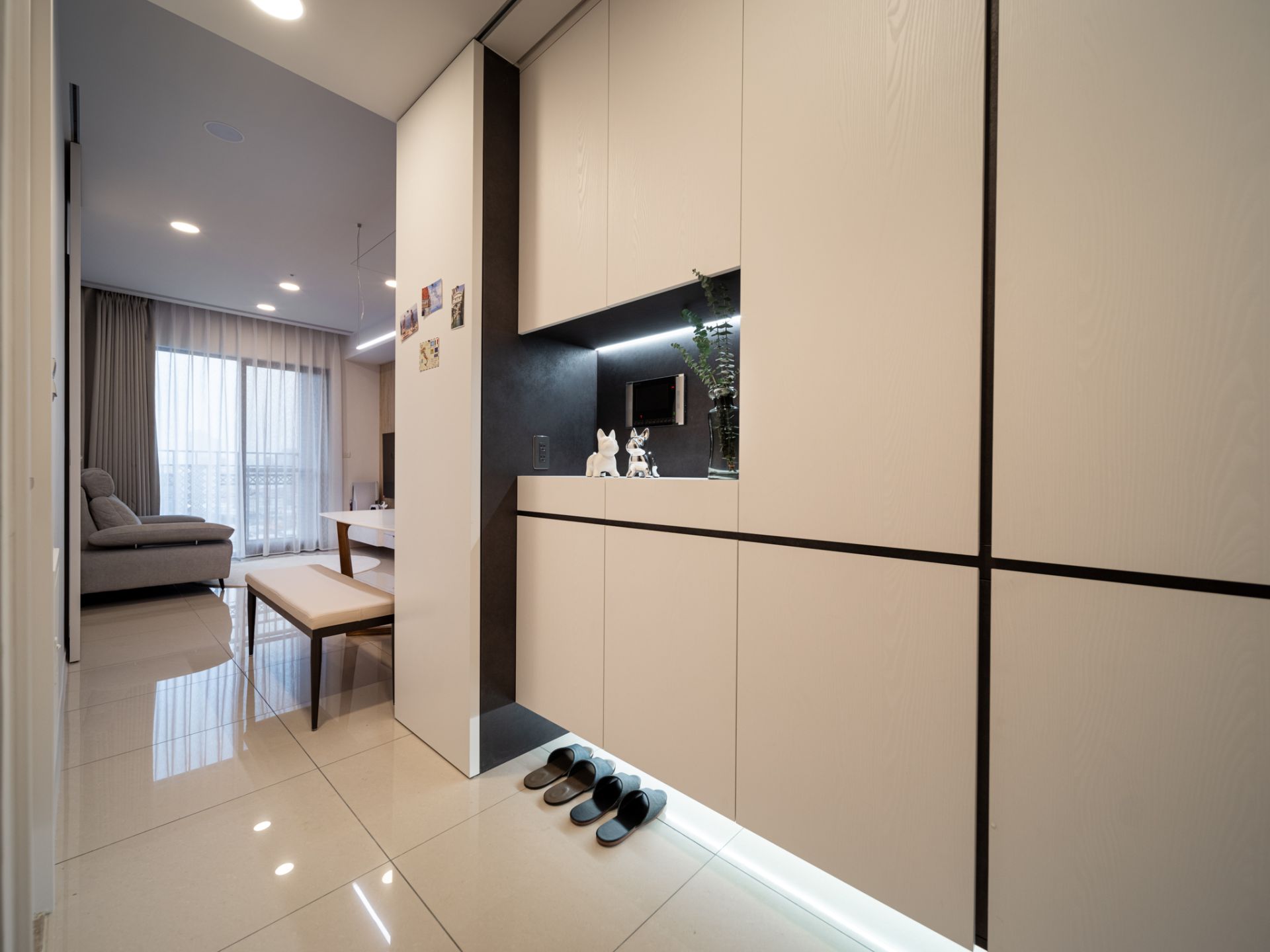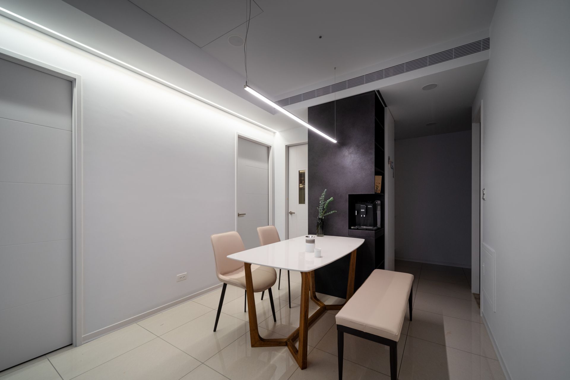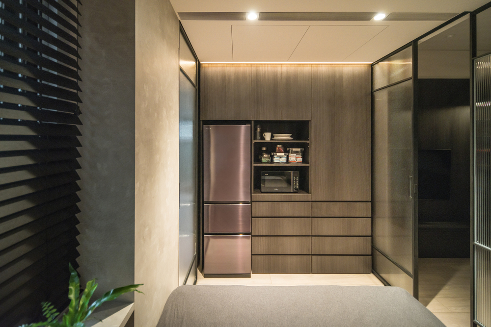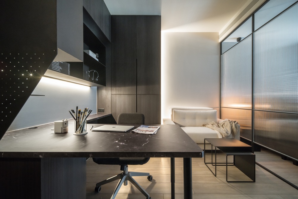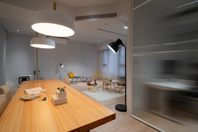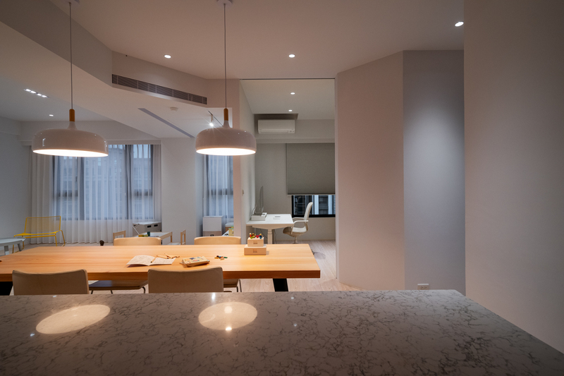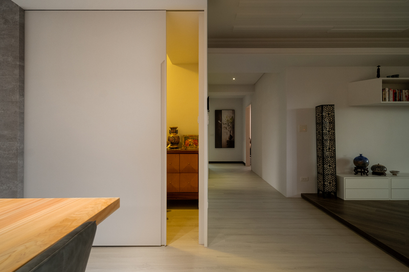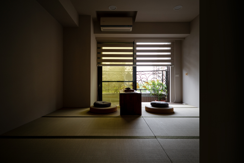 本案以現代主義的幾何型態為基調,將空間以幾何板塊切割的手法,讓天、地、壁之間相互呼應,形塑出簡潔現代又具有啓發性的禪文化內涵、靜與安的美學空間。