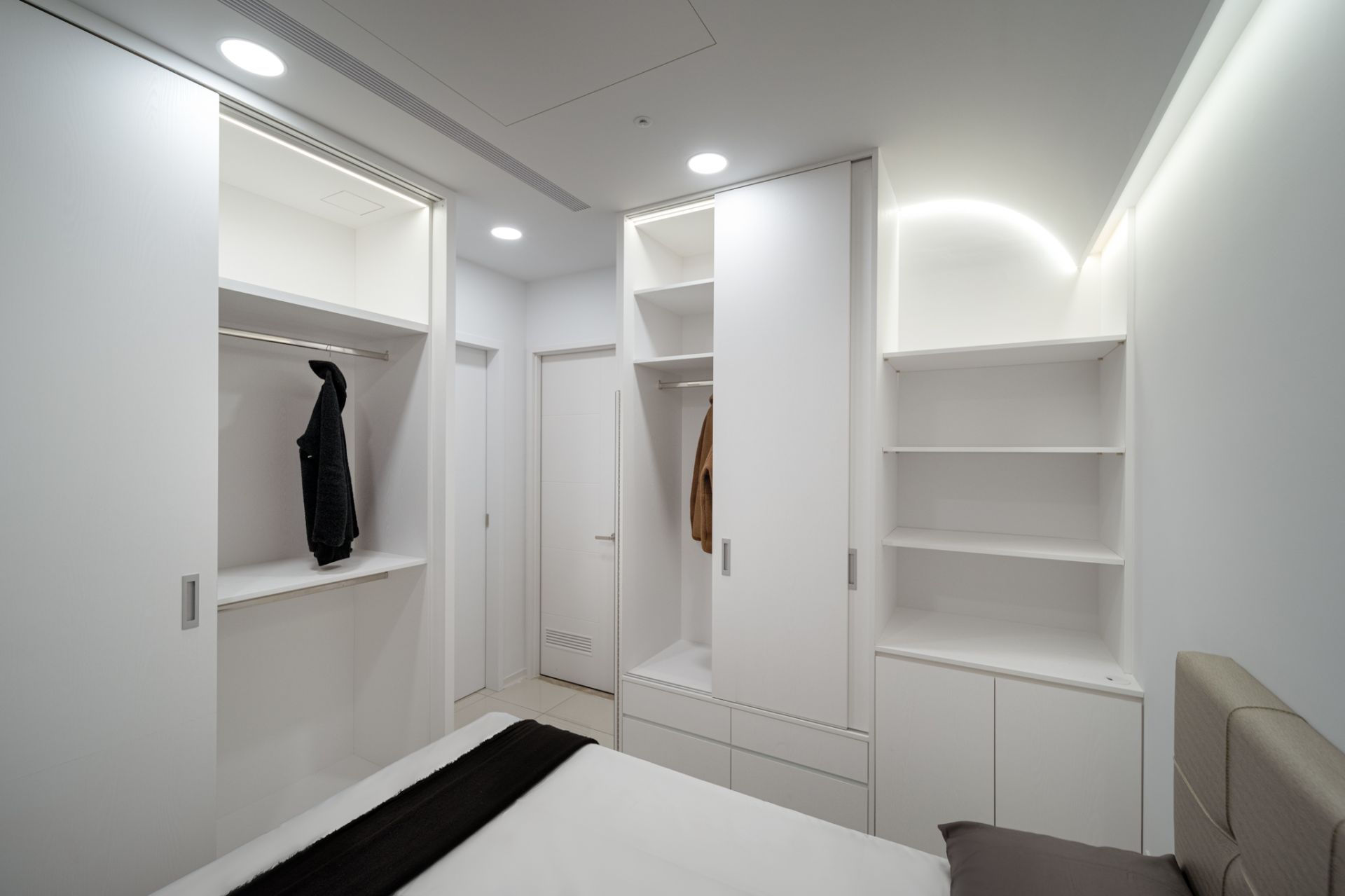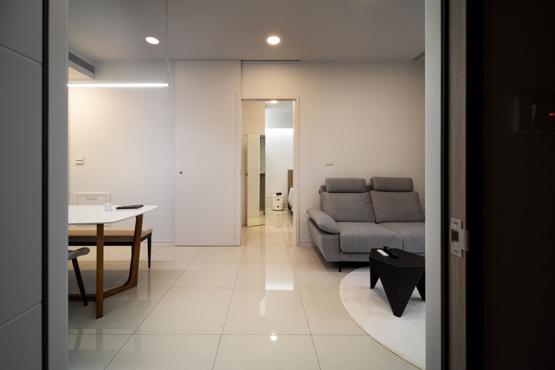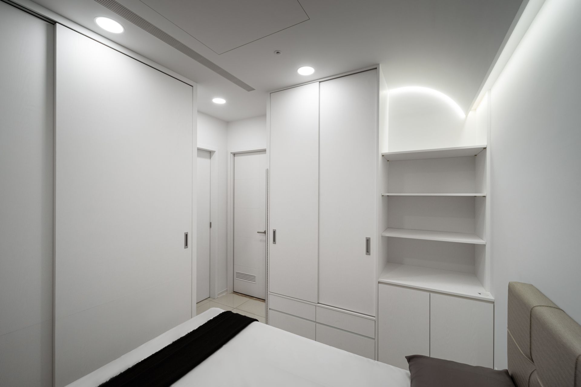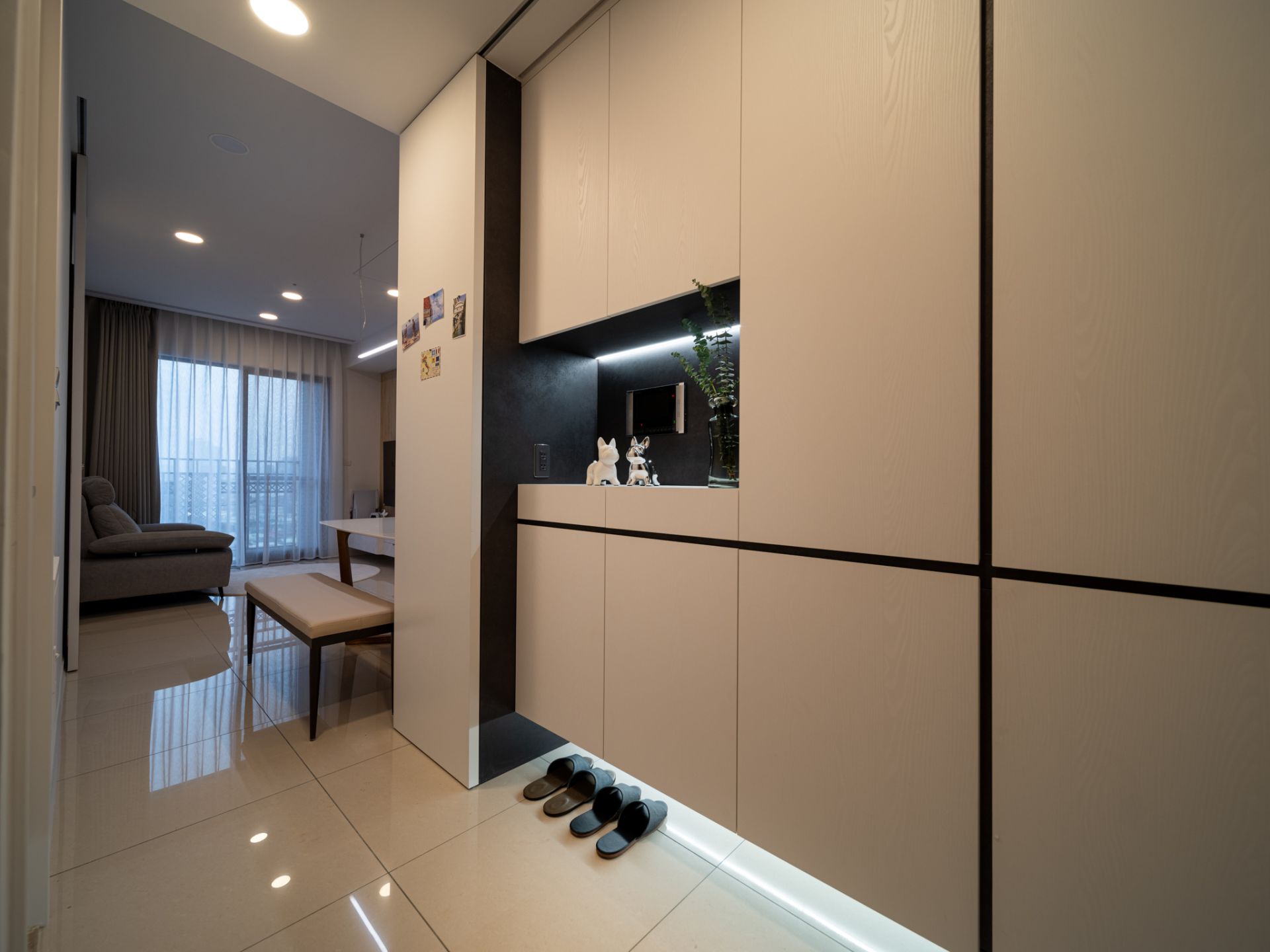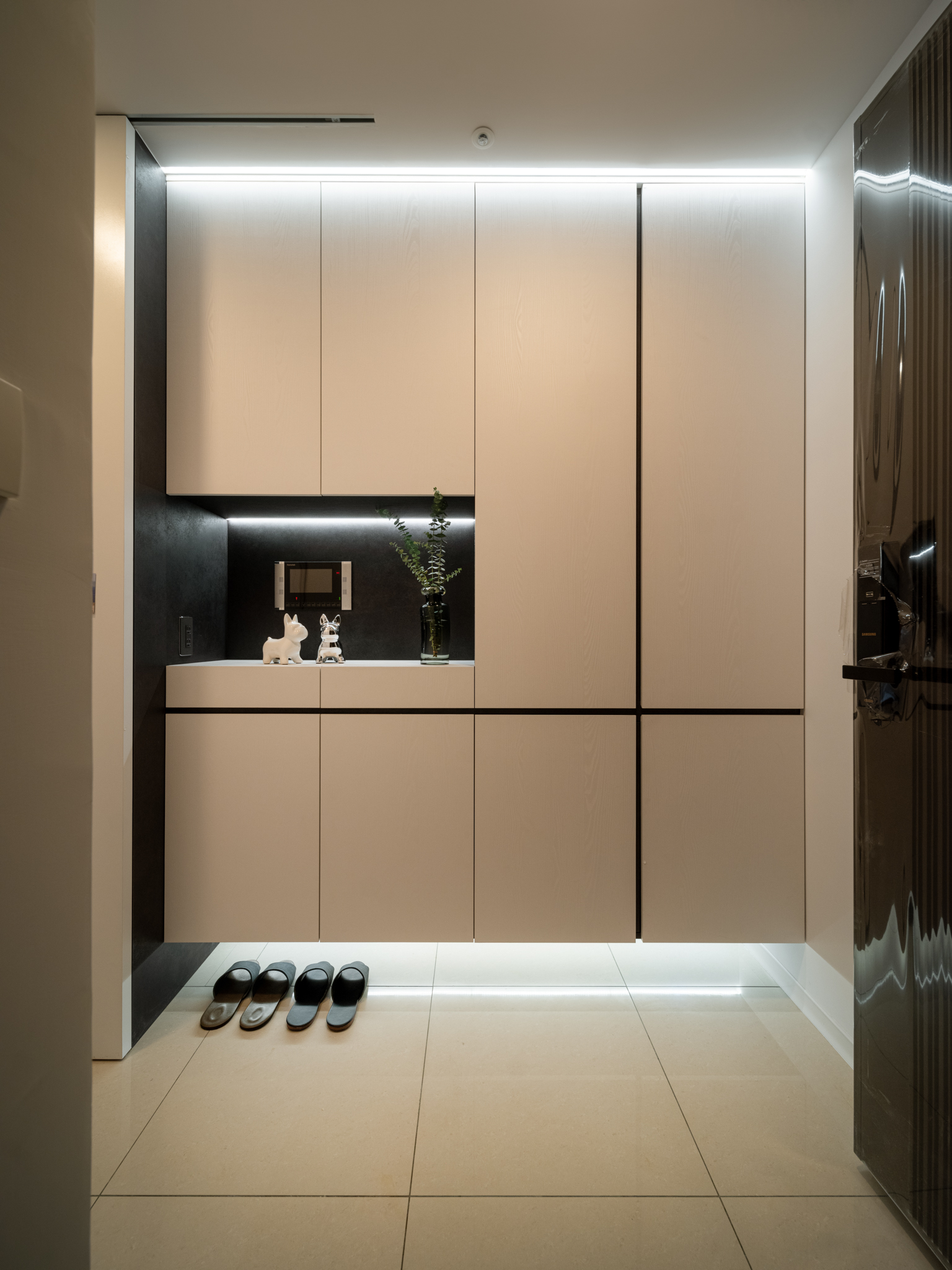 本案以現代主義的幾何型態為基調,將空間以幾何板塊切割的手法,讓天、地、壁之間相互呼應,形塑出簡潔現代又具有啓發性的禪文化內涵、靜與安的美學空間。